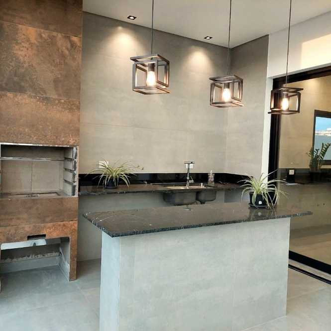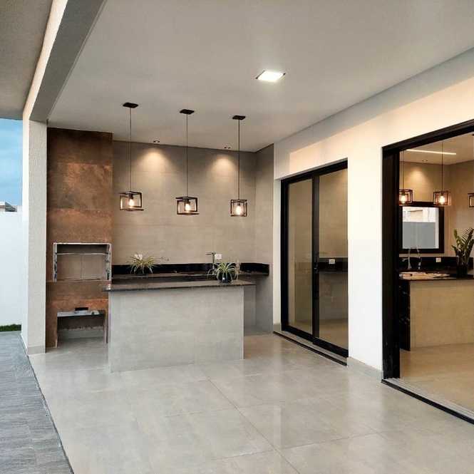 Com ambientes integrados, amplos painéis de vidro e iluminação natural abundante, o projeto cria uma conexão perfeita entre o interior da casa, a área de lazer e o moderno espaço gourmet.